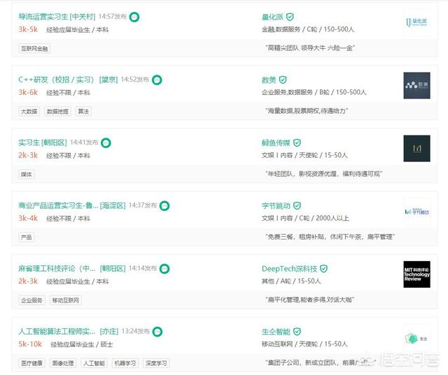 Boss直聘、智联招聘、拉勾等各个招聘平台都提供大量的实习岗位,大家设置好条件去搜索就可以了。